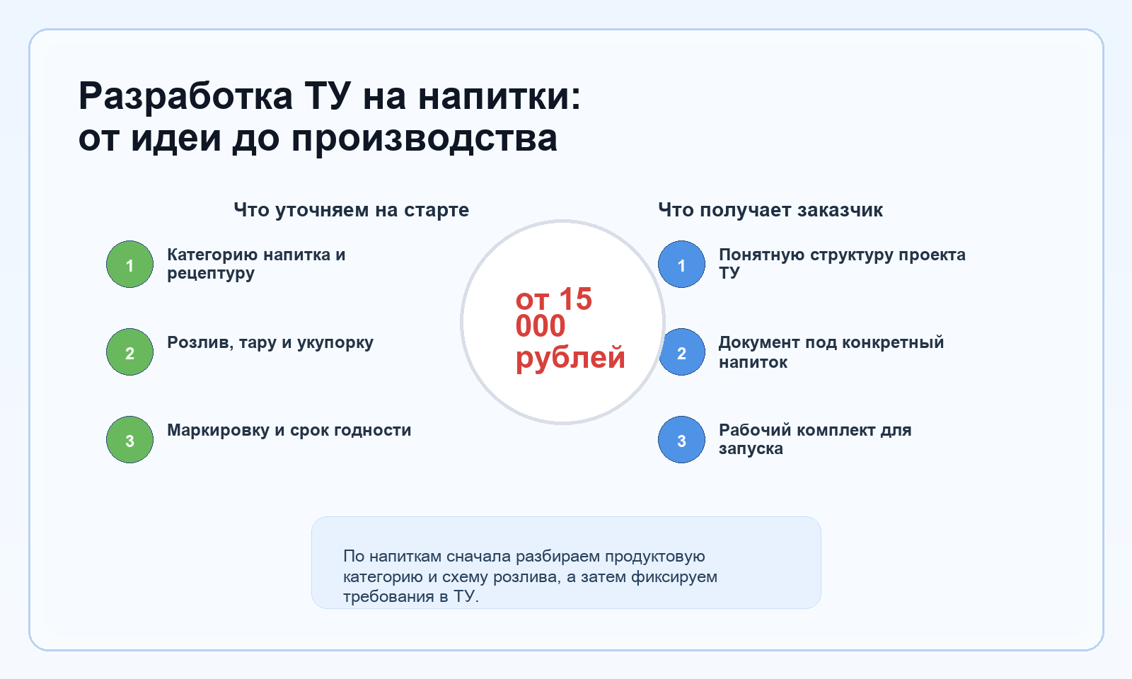 На этой странице собраны типовые вопросы по разработке ТУ на напитки. Полный блок FAQ также вынесен ниже.